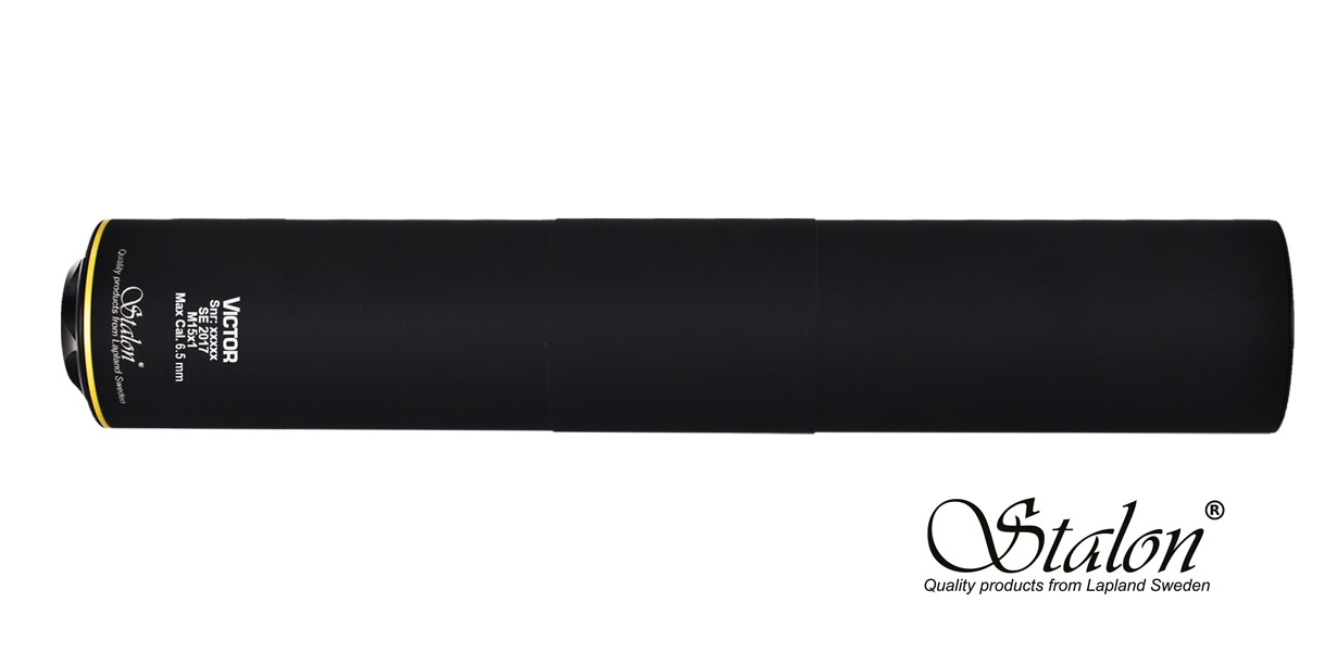 VICTOR ist der neue Schalldämpfer von STALON: er ist kleiner undleichter als der W110, aber er hat ein großes Leistungs-Potential. Erist in erster Linie für kleinere Kaliber von .22 – 6,5mm aber auch fürdas Kaliber .308Win geeignet. Dieser Schalldämpfer besteht aus einemTeil und ist nicht wie das Mod. W110 in Front- und Heckmodul zerlegbar.